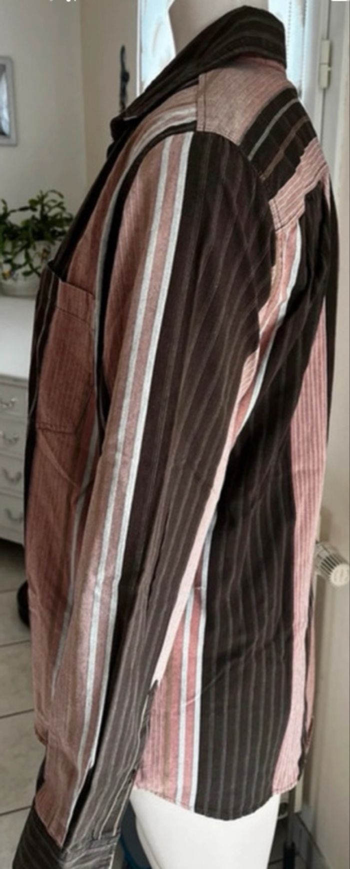 Chemise TBS manches longues – Taille M – Rayures marron & saumon – TBE - photo numéro 5