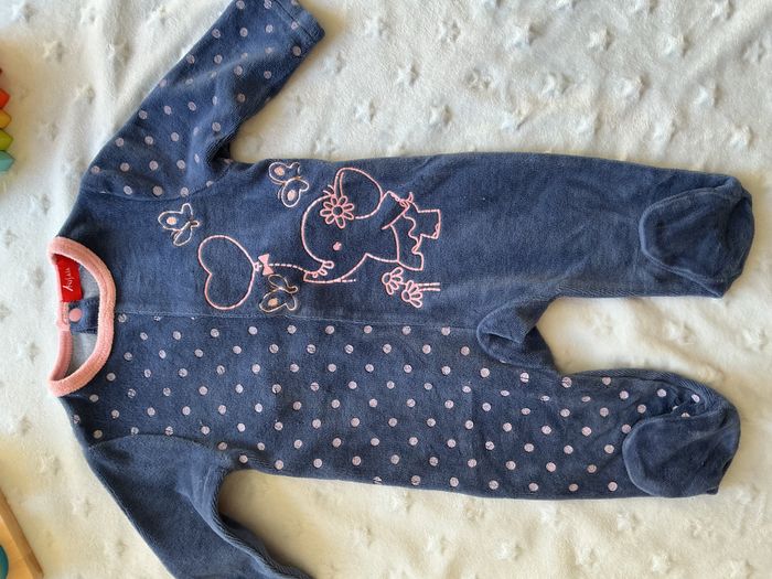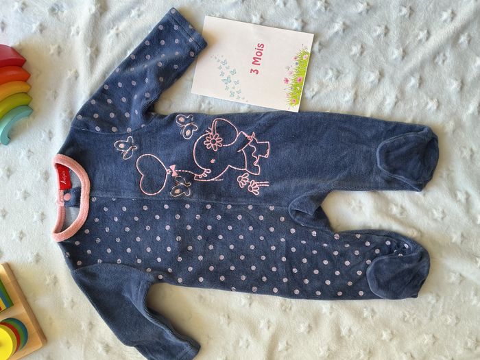 pyjama grenouillère en velours marine et rose 3 mois tissaia - photo numéro 1