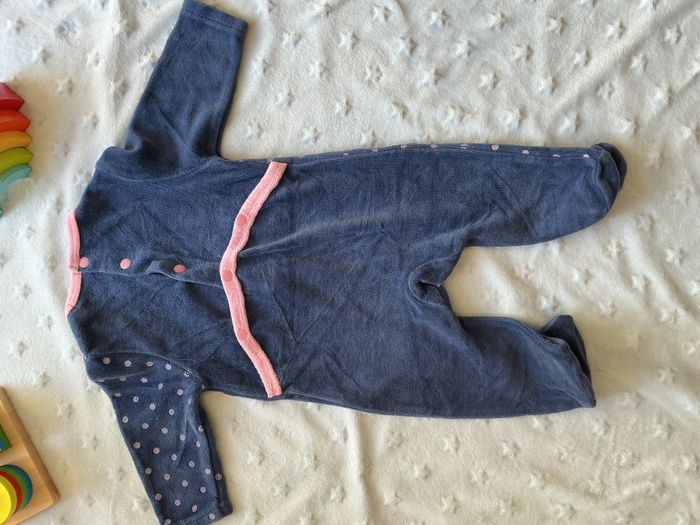 pyjama grenouillère en velours marine et rose 3 mois tissaia - photo numéro 3