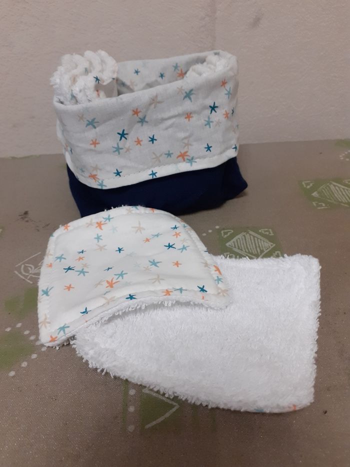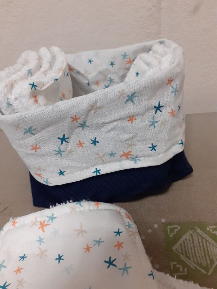 Lot de 8 lingettes + la panière Une face coton une face éponge 10cm × 10cm Neuf jamais servi