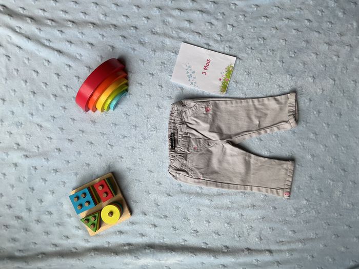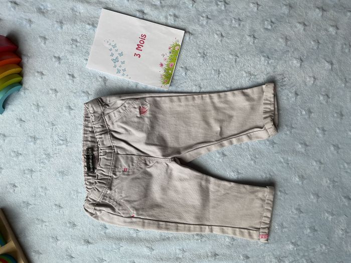 pantalon léger gris broderie rose 3 mois in extenso taille élastique - photo numéro 1