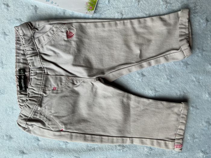 pantalon léger gris broderie rose 3 mois in extenso taille élastique - photo numéro 7