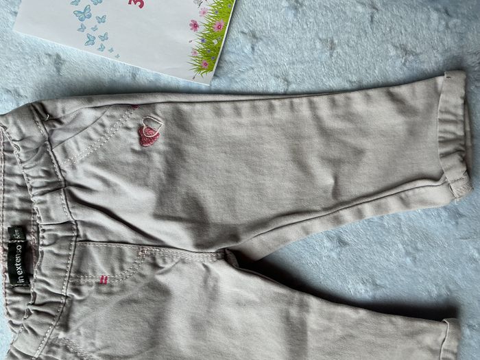 pantalon léger gris broderie rose 3 mois in extenso taille élastique - photo numéro 3