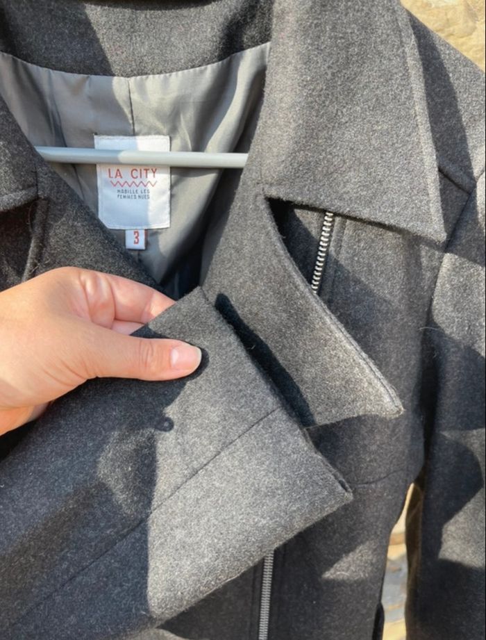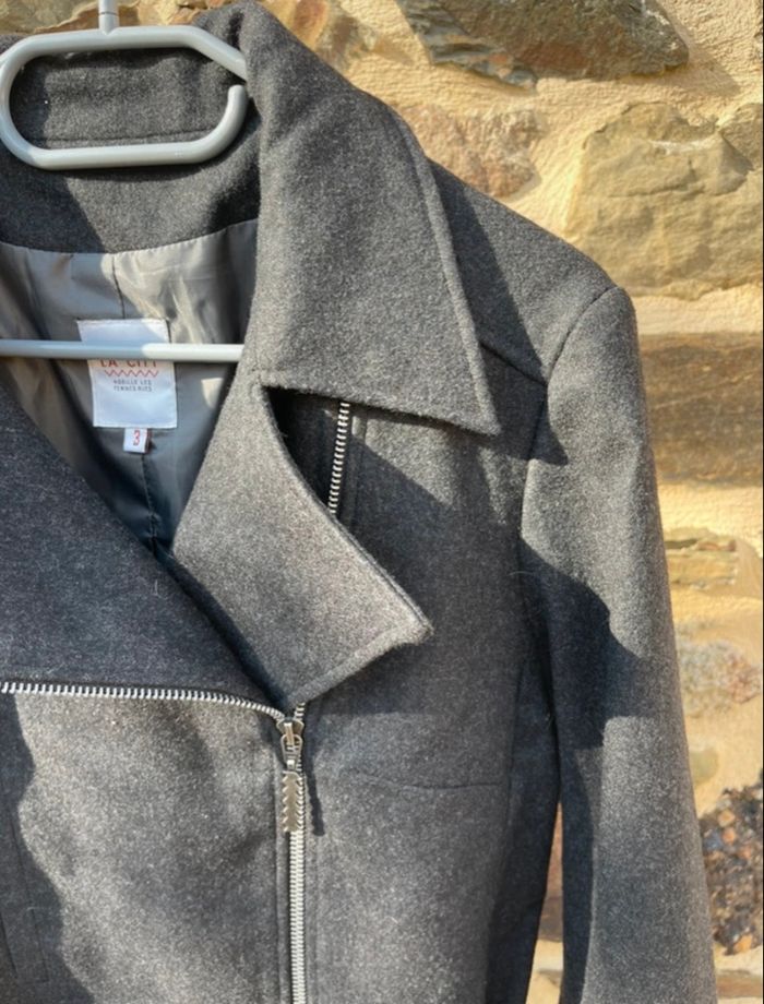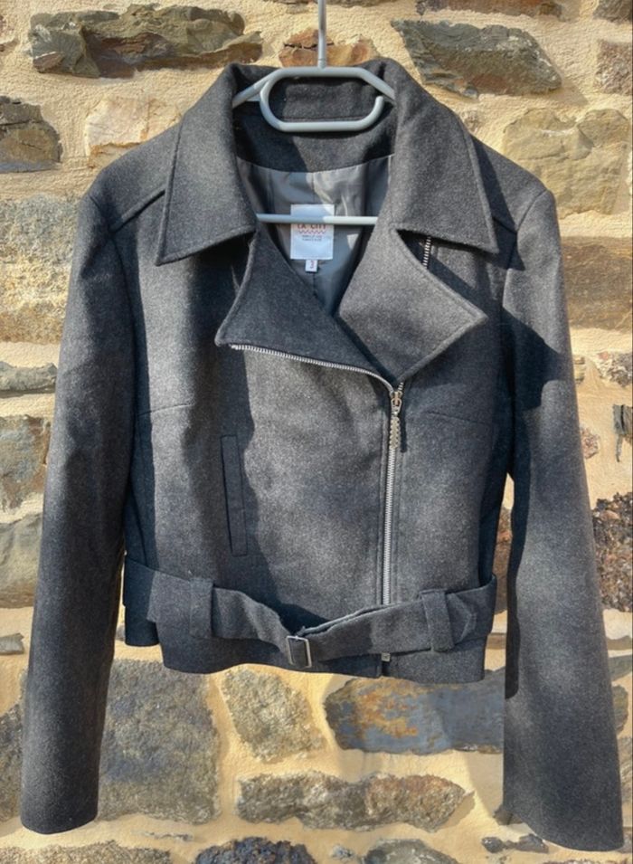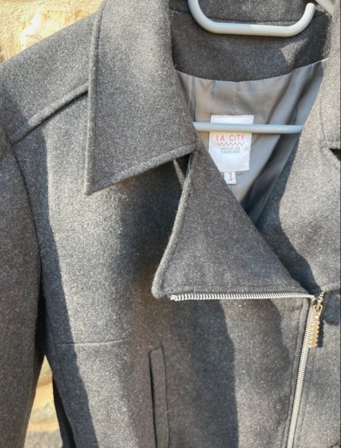 Perfecto en lainage gris souris avec ceinture sur les hanche Taille L Parfait état La city Style Vanessa Bruno