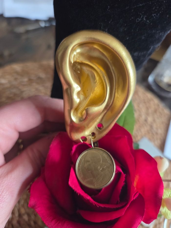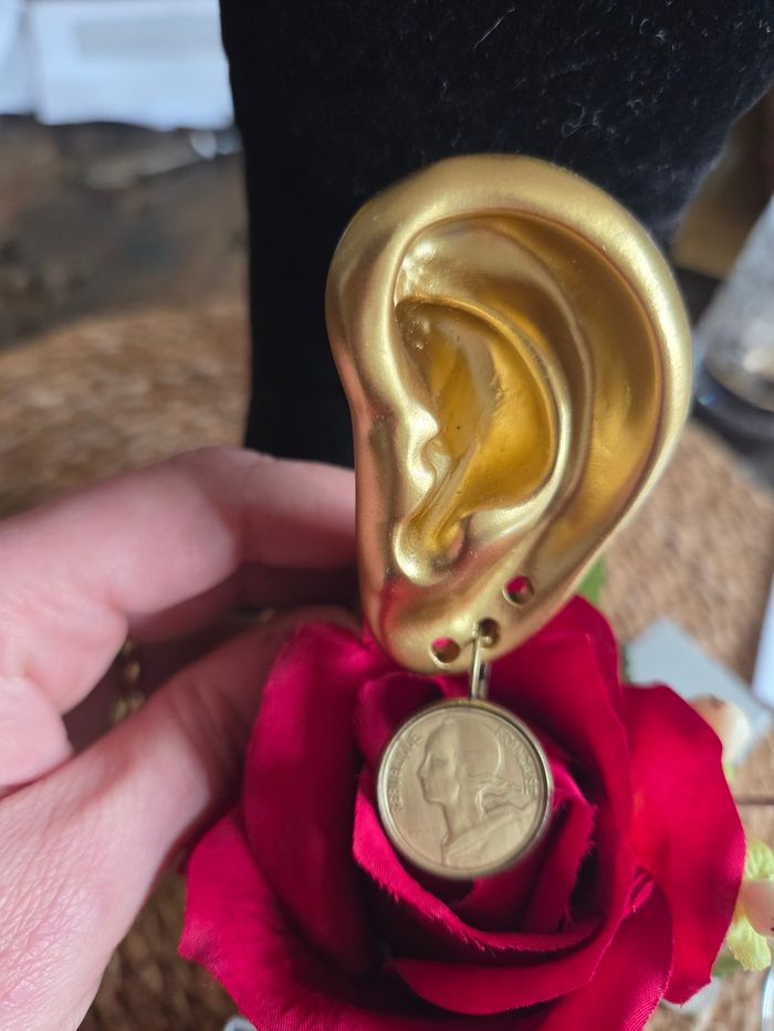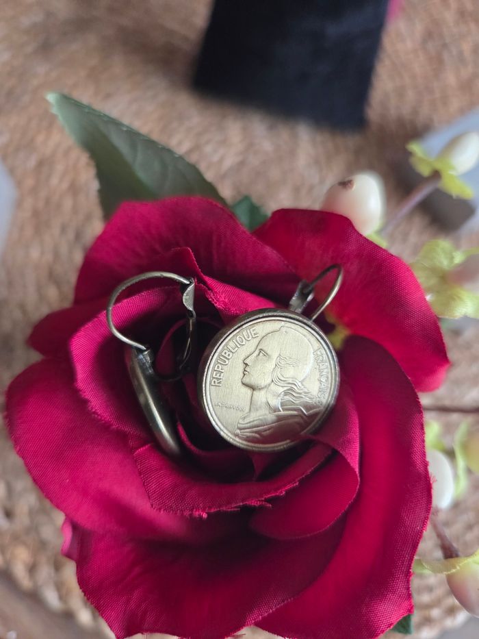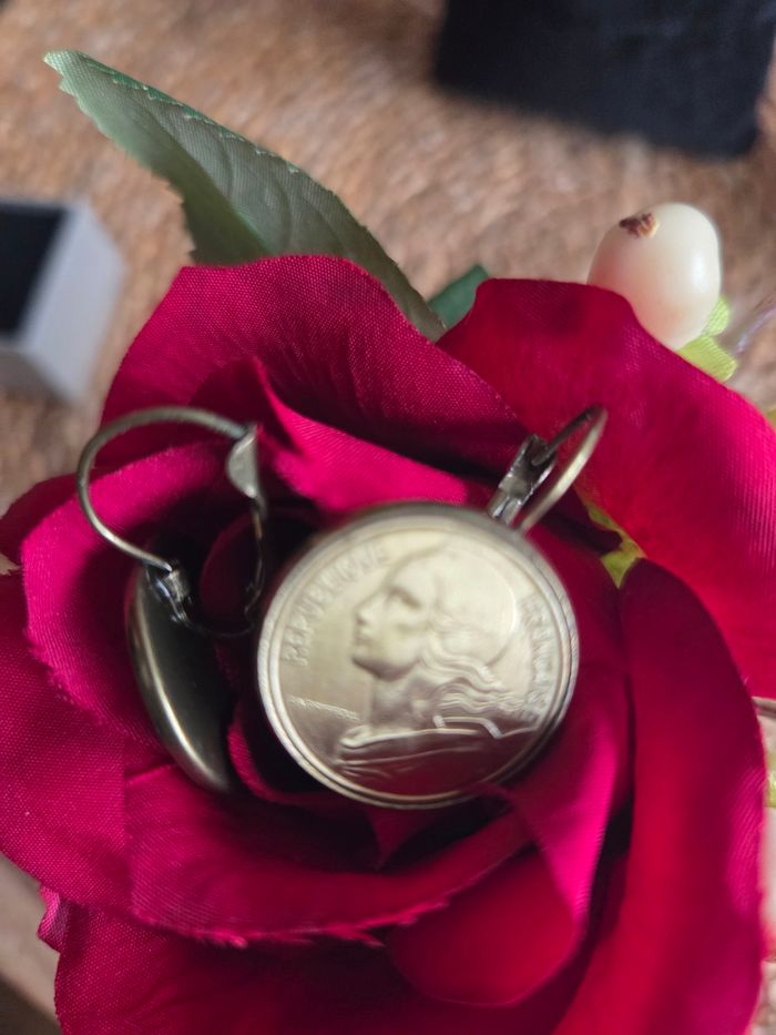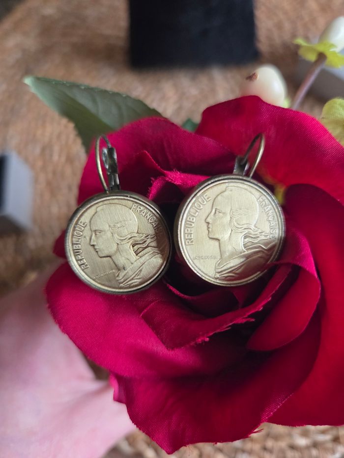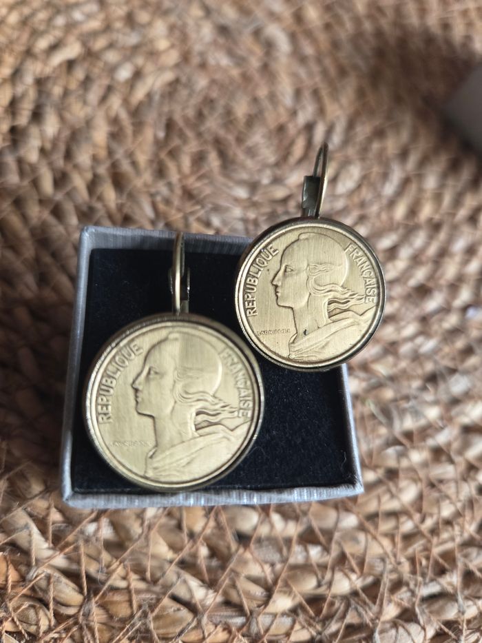 Boucles d oreilles 10cts de F Attaches en acier inoxydable gold bronze. Hyppoallergeniques 🎁 cadeau original ✨️ Pièce de 0.10cts de Franc. Semeuse Neuf. Fais main. Il sera livré dans une pochette ♥️ Possibilité de grouper avec de nombreux autres articles en vente.✨️🎁👗🛍 Envoi sous 24h_48h 🐱 Rapide, soigné et 🎥