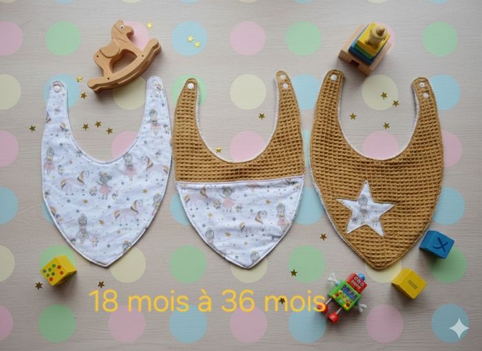 Lot de 3 bavoirs bandana 18 mois à 36 mois Création fait main artisanale  - photo numéro 1