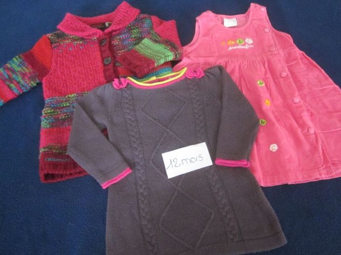 12m, robe velours sans manche + robe tricot ml orchestra + gilet tricot catimini