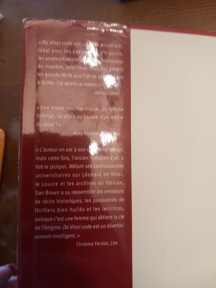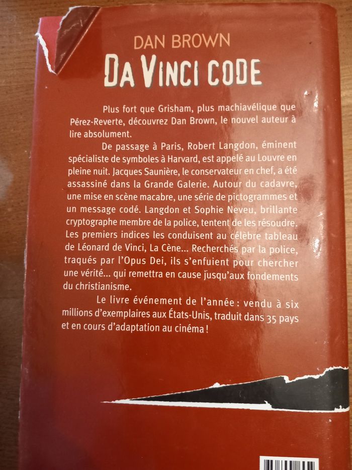 Livre Da Vinci code la pochette est un peu abîmée