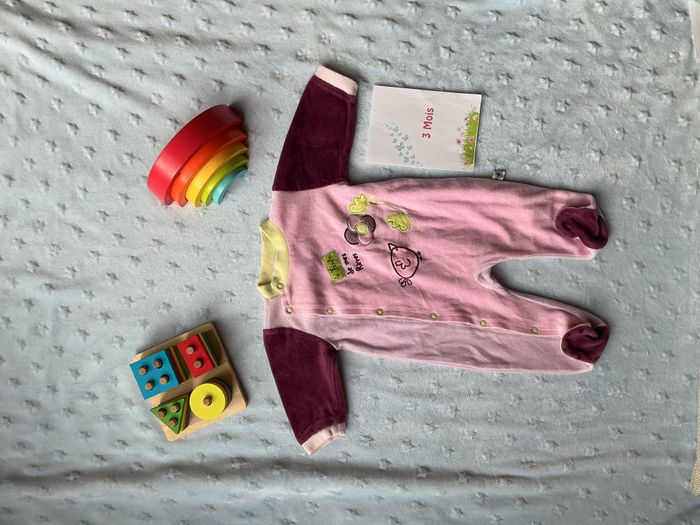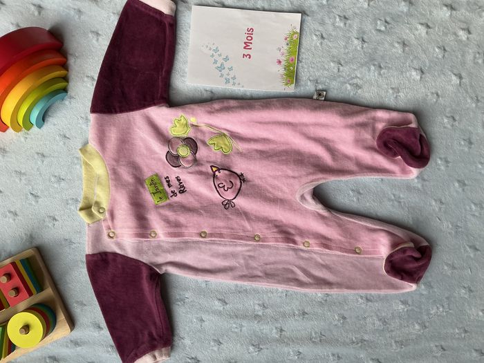 pyjama grenouillère en velours rose et violet ouverture devant 3 mois les kinousses - photo numéro 1