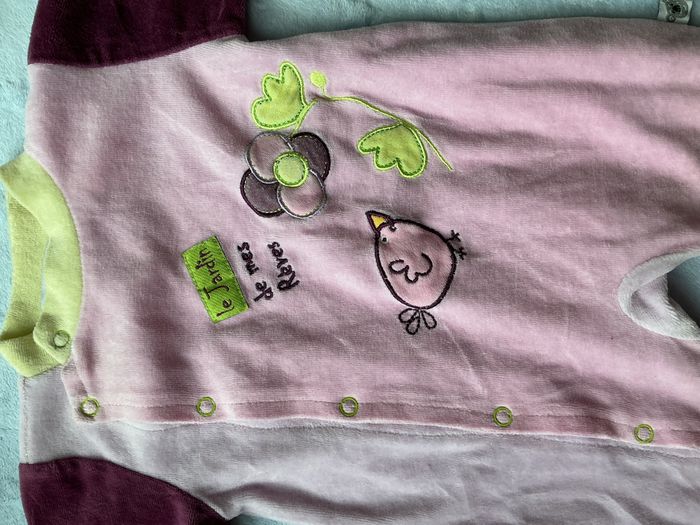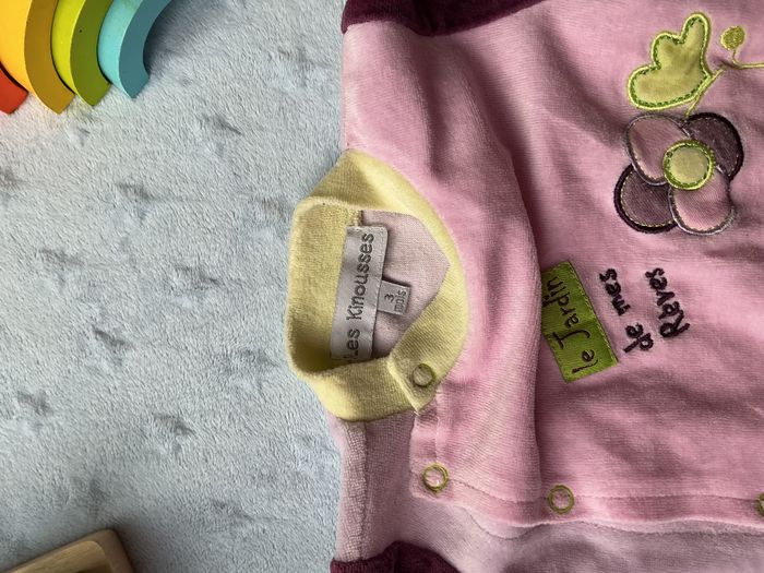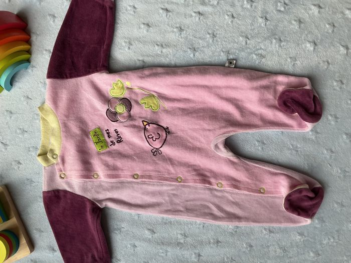 pyjama grenouillère en velours rose et violet ouverture devant 3 mois les kinousses - photo numéro 9