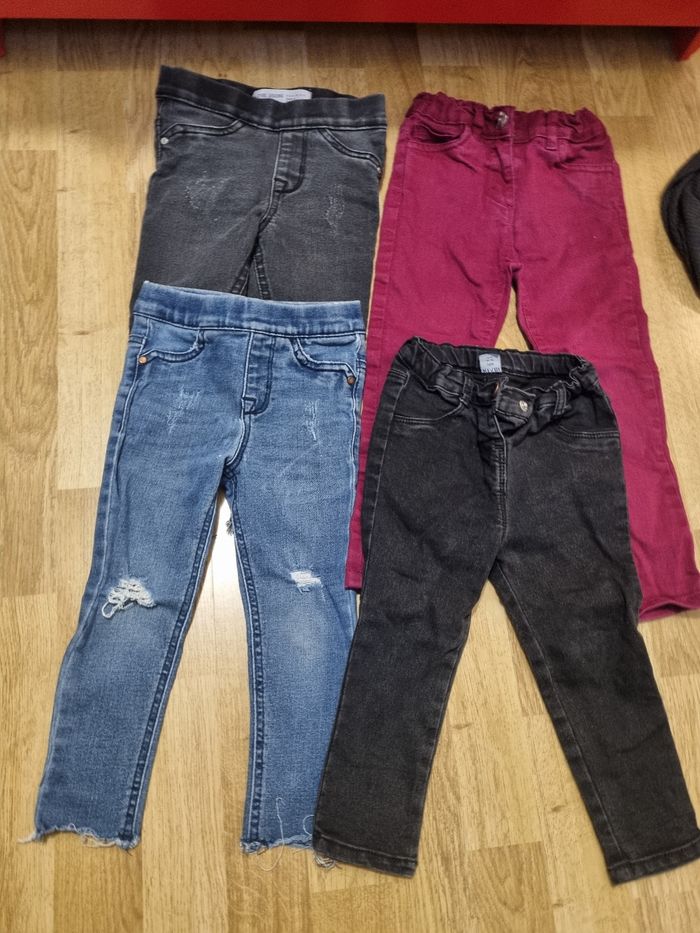 5 jeans en tres bon etat taille 24 mois . Et 6 pantalon en 24 mois. ( 2 ont des tâches qui peuvent partir au lavage) 8 body tres bon etat en 12 mois . 3 manches courtes et 5 manches longues . Toutes marques : petit bateau , disney baby, C&A, orchestra Possibilité de prendre a l'unité
