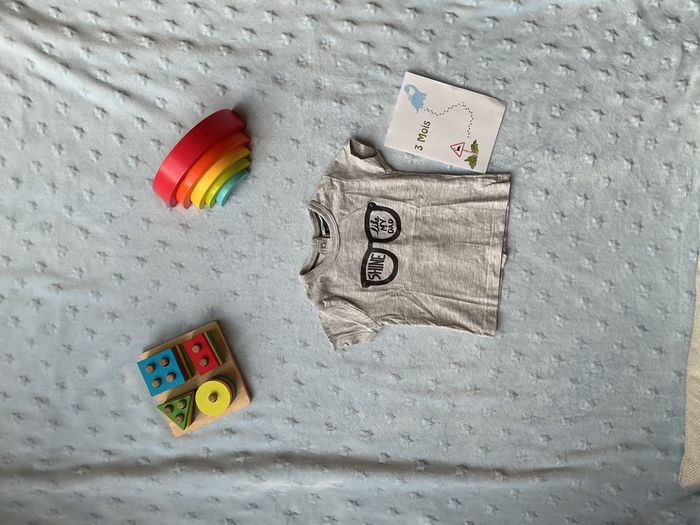 teeshirt manches courtes gris dessin devant 3 mois ouverture totale au dos kiabi - photo numéro 1