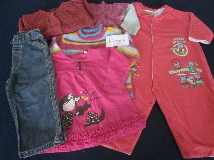 12m, combi molletonnée + 2 hauts ml + robe ml + jean + gilet offert, pic ouic, kiabi ...