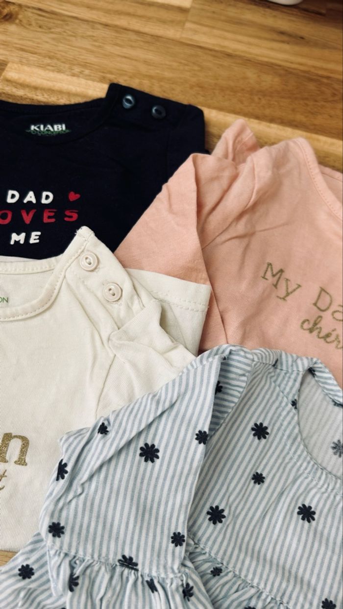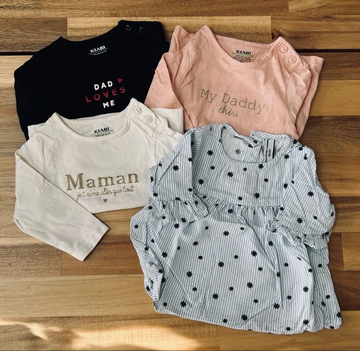 Lot de 3 teeshirt manches longues et 1 blouse Taille 3 mois Vêtement à relaver car stocker dans une caisse