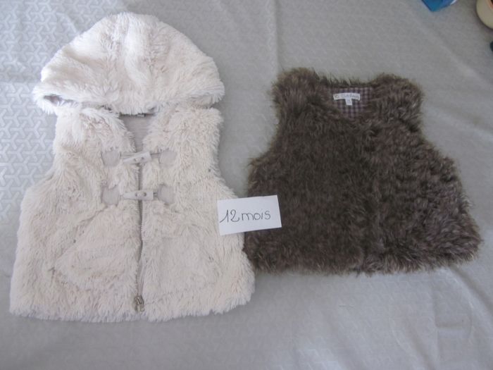12m, 2 vestes sans manche, toutes douces, kitchoun