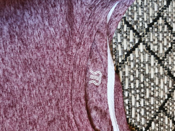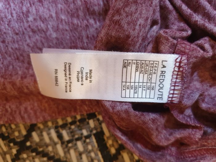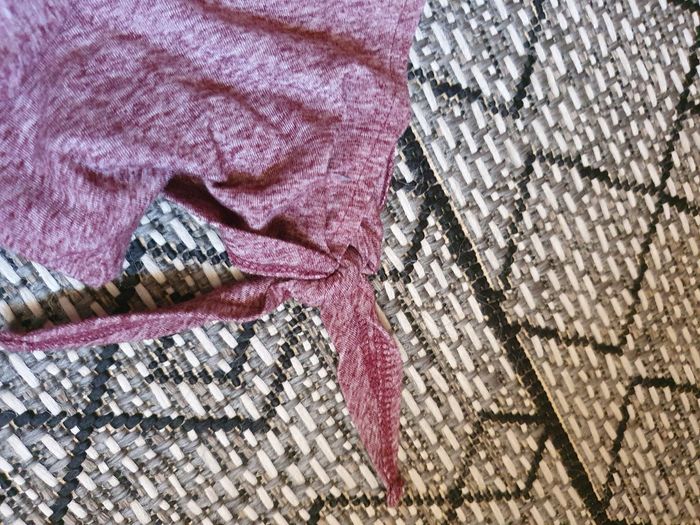 Tee shirt manches courtes avec petits noeuds, coloris prune moucheté. En Excellent état.