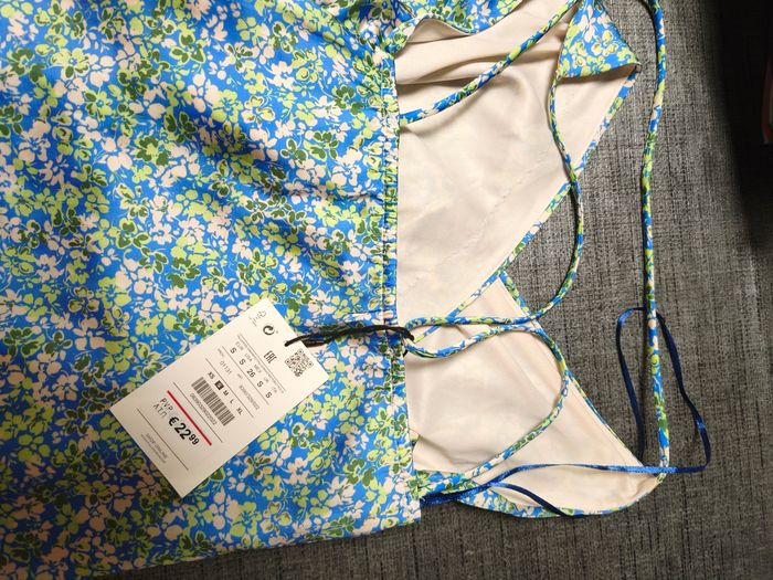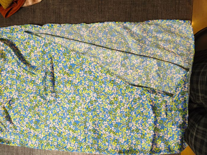 Robe effet satin, très jolie. Neuve. Jamais portée. Doublure sur le haut de la robe. Fente côté. Fermeture éclair côté haut.