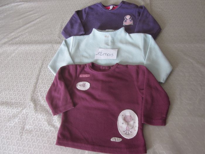 12m, 3 hauts ml polaire, kiabi, boite à malices