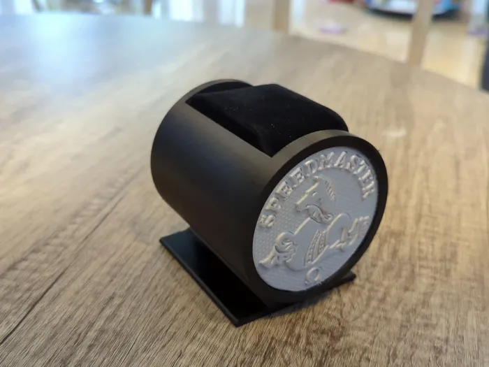 Présentoir pour mettre en valeur la montre mythique Omega Speedmaster. Le présentoir est réalisé via un processus d'impression 3D. La vente comprend le présentoir et le coussin de présentation. 🚨La montre ne sera pas vendue avec le présentoir.🚨