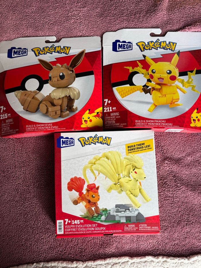 Lot de 3 boîtes de marque MEGA 1er : evoli 2eme : pikachu 3em : goupix Les3 boîtes sont neuves. Jamais ouvertes. #lego #mega #pokemon #evoli #pikachu #goupix #jeu #jeudeconstruction #jeudeconstructionlego #jeudeconstructionmega