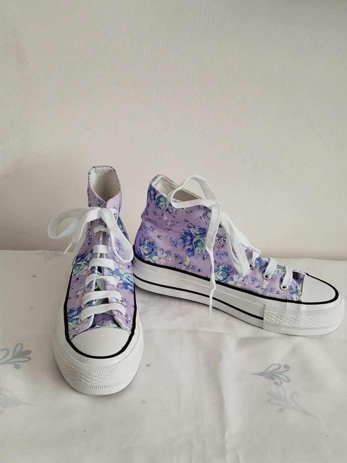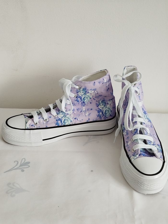 Baskets plateforme montantes lila fleuri Vty taille 39  - photo numéro 2