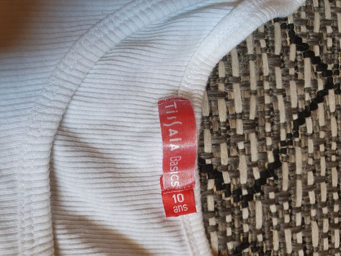 Débardeur côtelé blanc tissaia taille 10 ans, très bon état.