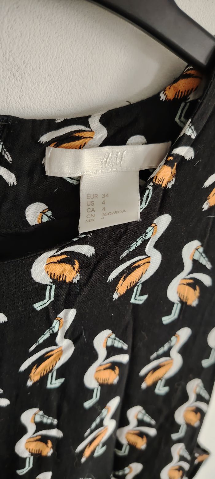 Robe patineuse sans manches H&M taille 34 – imprimé oiseaux, noire