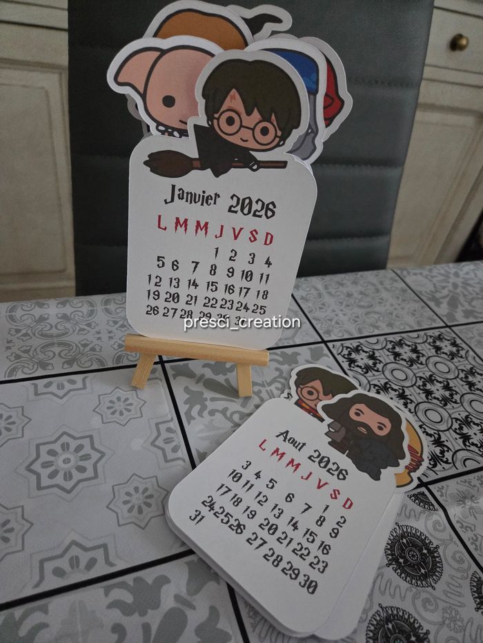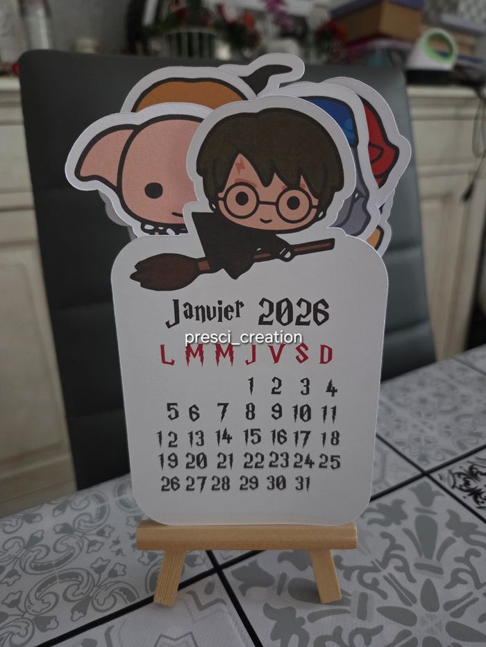 Calendrier avec son petit supprt en.bois Chaque mois un personnage Le thème peux etre modifier