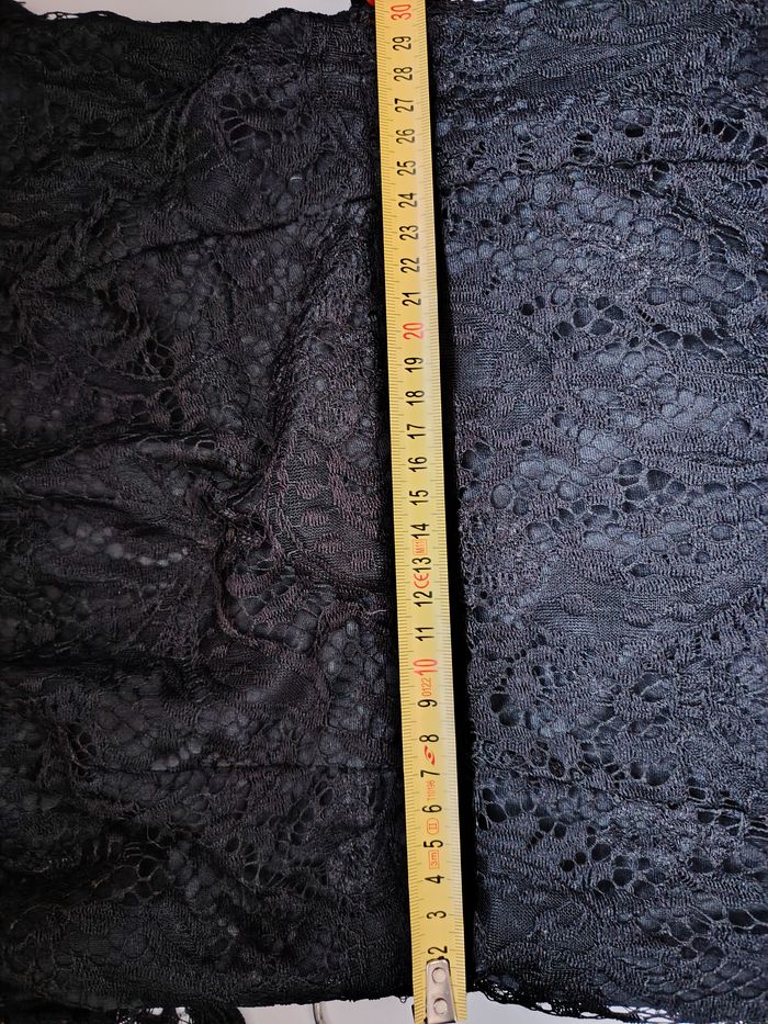 Robe noire élégante entièrement en dentelle, parfaite pour une tenue de soirée / événement. Modèle avec manches longues en dentelle transparente et haut façon bustier avec un joli décolleté cœur. Coupe près du corps, très féminine, avec une dentelle travaillée et un rendu chic. Taille non indiquée, je mets les mesures à plat : environ 34 cm au niveau du haut (voir photo) et environ 30 cm à la taille (voir photo). #femmevale62100 #robevale62100 #tailleXSvale62100 #robe #tailleXS