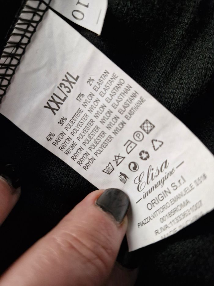 🌸Superbe pantalon taille élastiquée et lien à nouer. Tissu style côtes côte doux et un peu épais pour la saison fraiche/froide et très confortable. 💮Jambes larges ⚕️2 poches latérales ⚫️Couleur noire 🌟 Marque Elisa Immagine Collezione 🏷 Taille XXXL 📌Mesures sur tissu extensible Taille de 36cms à plat à 54cms en tirant Hauteur 95cms Entrejambe 89cms 📷Bien regarder les photos pour le détail 🚨Défauts à signaler Neuf, juste essayer, l'étiquette est cepédant décrocher. Je n'ai pas remarqué d'anomalie 💲Faites des économies en créant un lot pour profiter des réductions actives dès 2 articles #naya59199pantalonfemme #naya59199femme #naya59199femme48 #naya59199femme46 #naya59199pantalon
