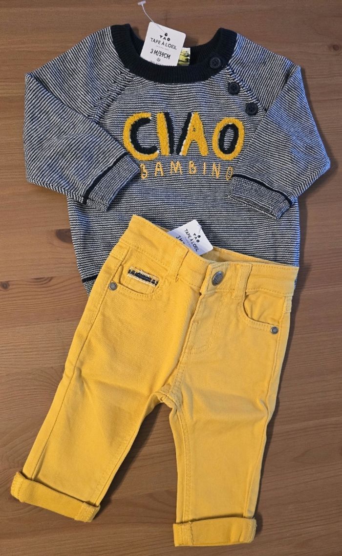 (NEUFS non portés) 🏷🏷🥰💙 superbe ensemble pull et jeans 3mois Garçon 💙🥰 - photo numéro 1