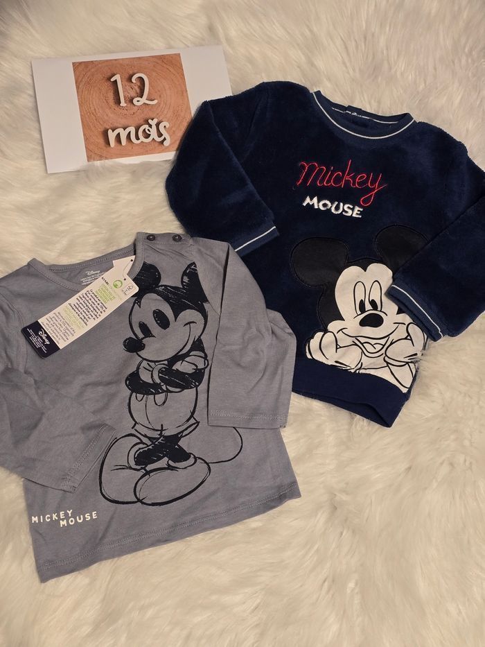 (Neufs non portés)💙🤩😍 sweat polaire et teeshirt ml disney /mickey 12 mois💙😍🤩 - photo numéro 2