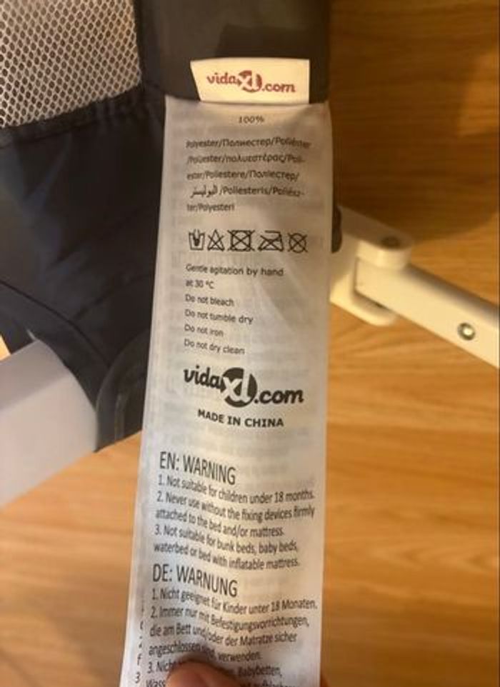 Barrière de sécurité pliable pour lit d’enfant VidaXL, 180cm x 42 cm en parfait état (seulement 2 minuscules trou dans la toile voir photo), vendu avec la notice.