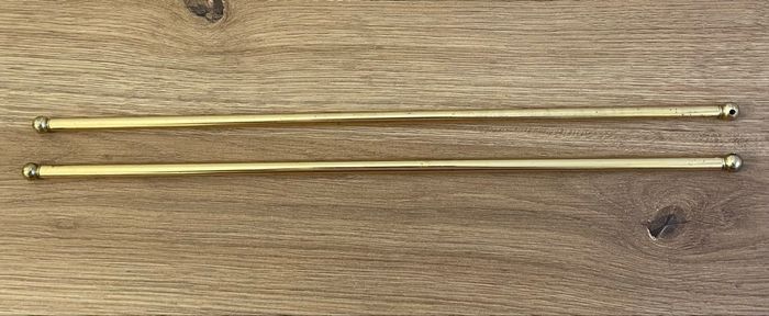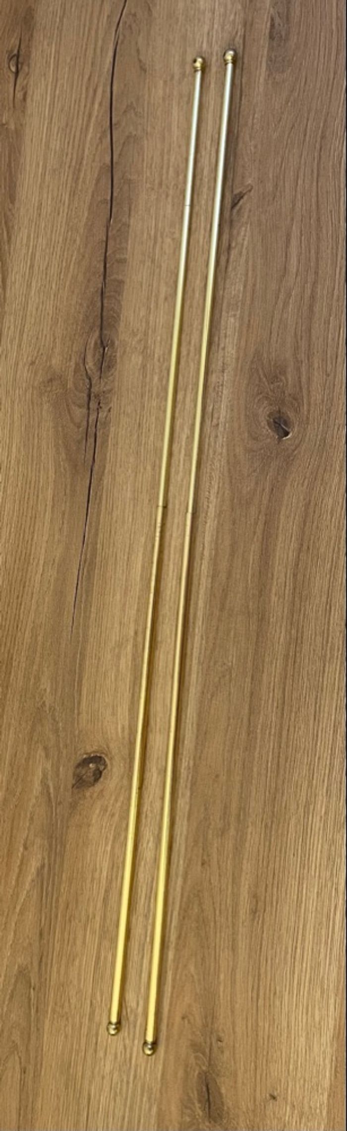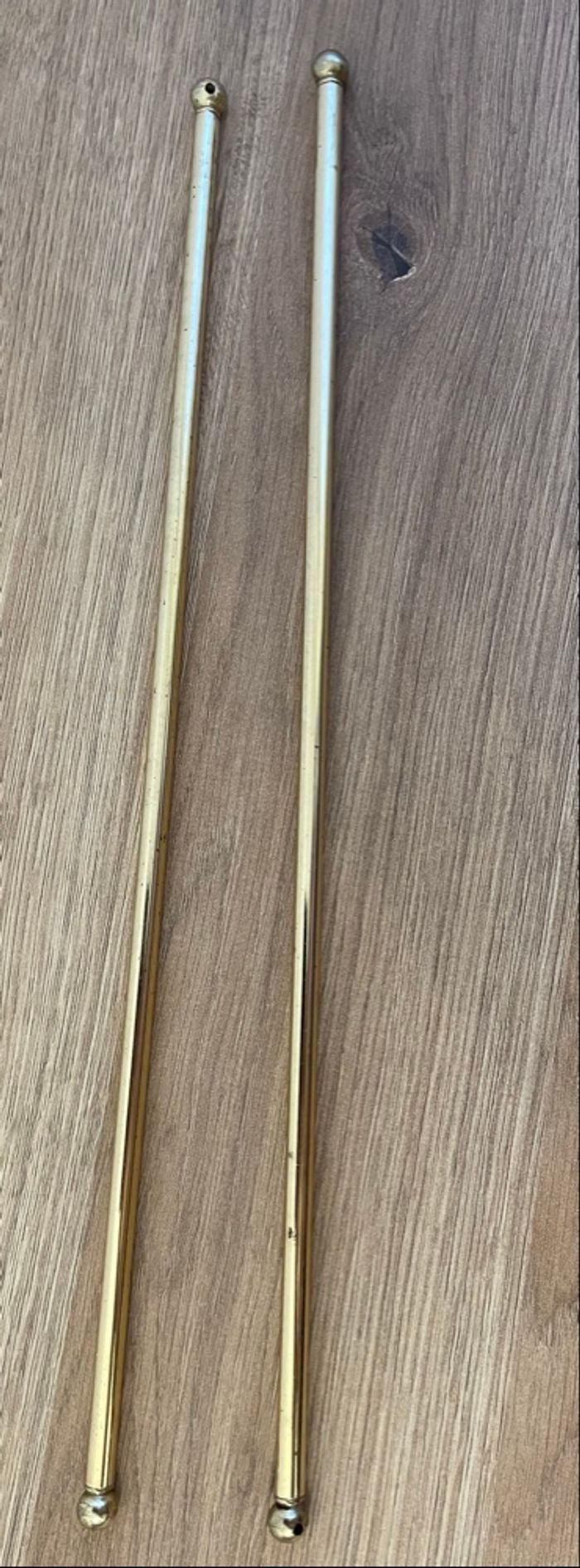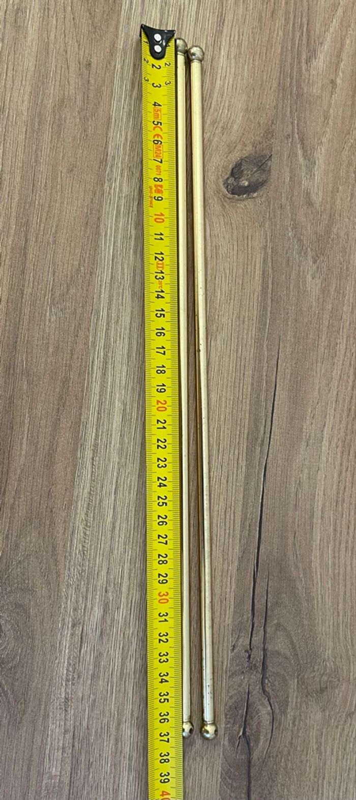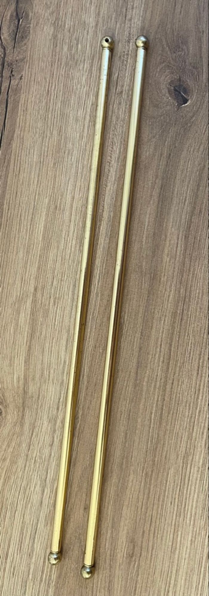 Lots 2 kit de tringle rideaux Métal Doré avec est la solution idéale pour suspendre vos rideaux en toute simplicité. Sa barre extensible, servie par mal bon état Dimensions : extensible de 37 cm à 69 cm. Diamètre du tube 6 cm Matière : métal