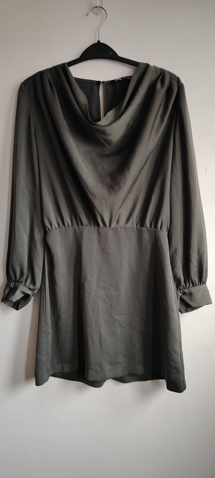 Robe courte Zara kaki drapée manches longues – Taille XS (34) - photo numéro 1