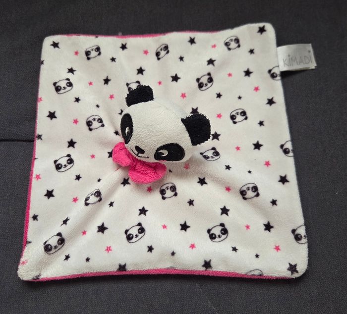 Doudou carré plat Panda blanc / rose et noir - Kimadi