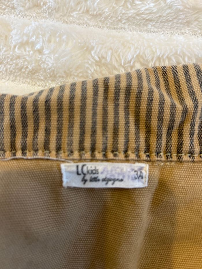 Jolie veste en jean moutarde avec traits gris/noirs. En parfait état 3 ans de la marque Little Cigogne