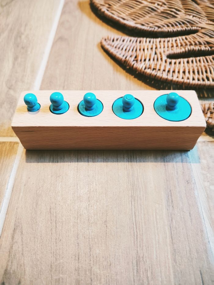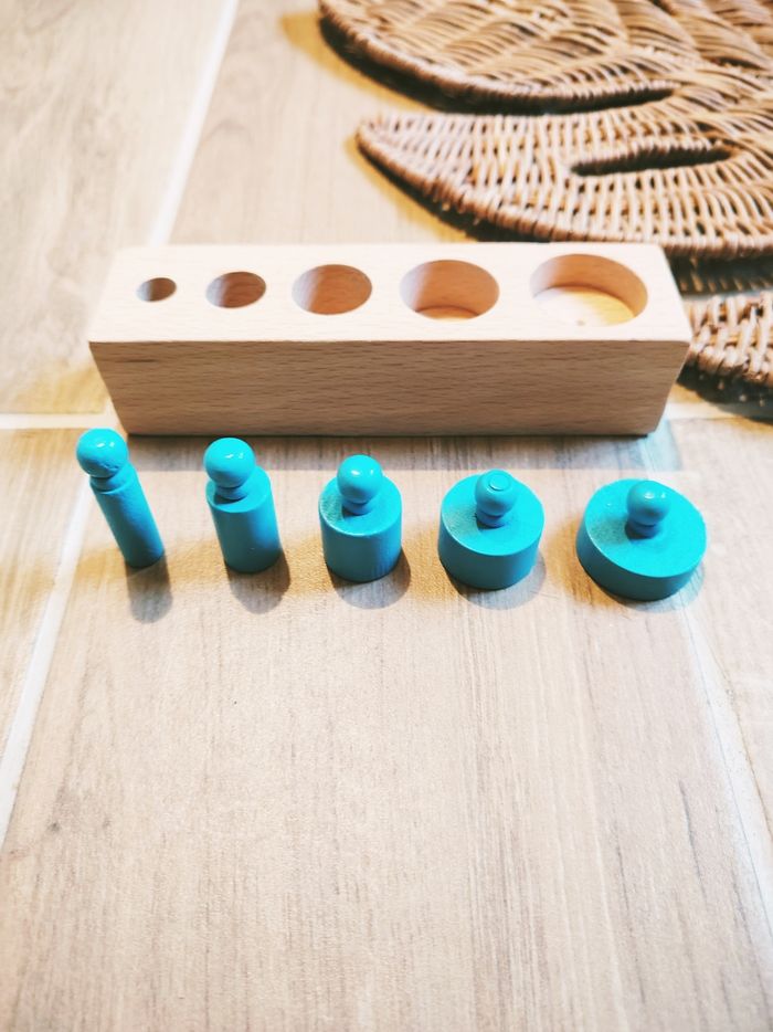 👶Bloc de cylindres /poids en bois bleu - perception dimensionnelle Montessori