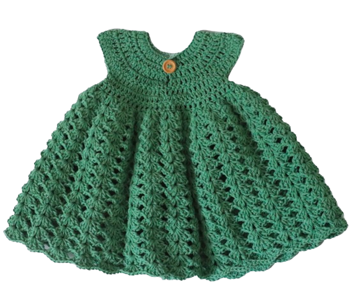 robe fait main au crochet en coton 3 à 6 Mois avec bouton en bois dans le dos