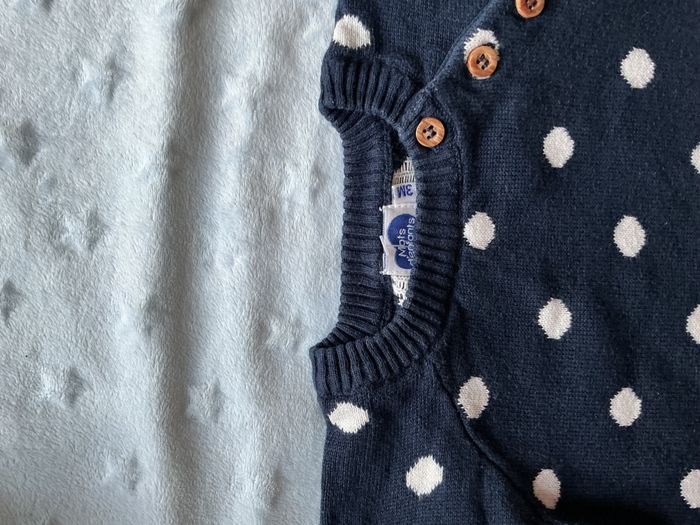 pull col rond marine à pois blanc 3 mois mots d'enfants - photo numéro 6