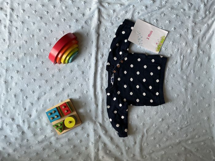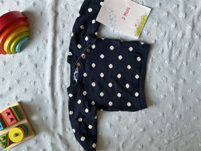 pull col rond marine à pois blanc 3 mois mots d'enfants - photo numéro 7