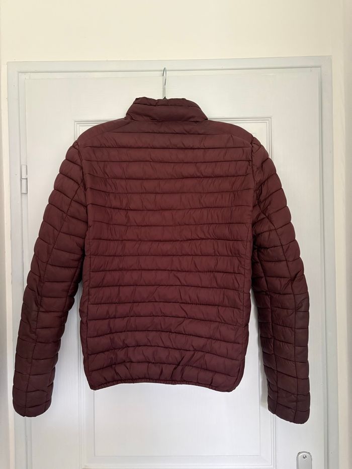 Vends doudoune légère de la marque Pull&Bear, couleur bordeaux. C'est la veste idéale pour la mi-saison ou les journées fraîches : elle est très légère à porter mais tient bien chaud grâce à son rembourrage isolant. • Marque : Pull&Bear • Taille : S • Couleur : Bordeaux • État : Très bon état • Style : Coupe cintrée