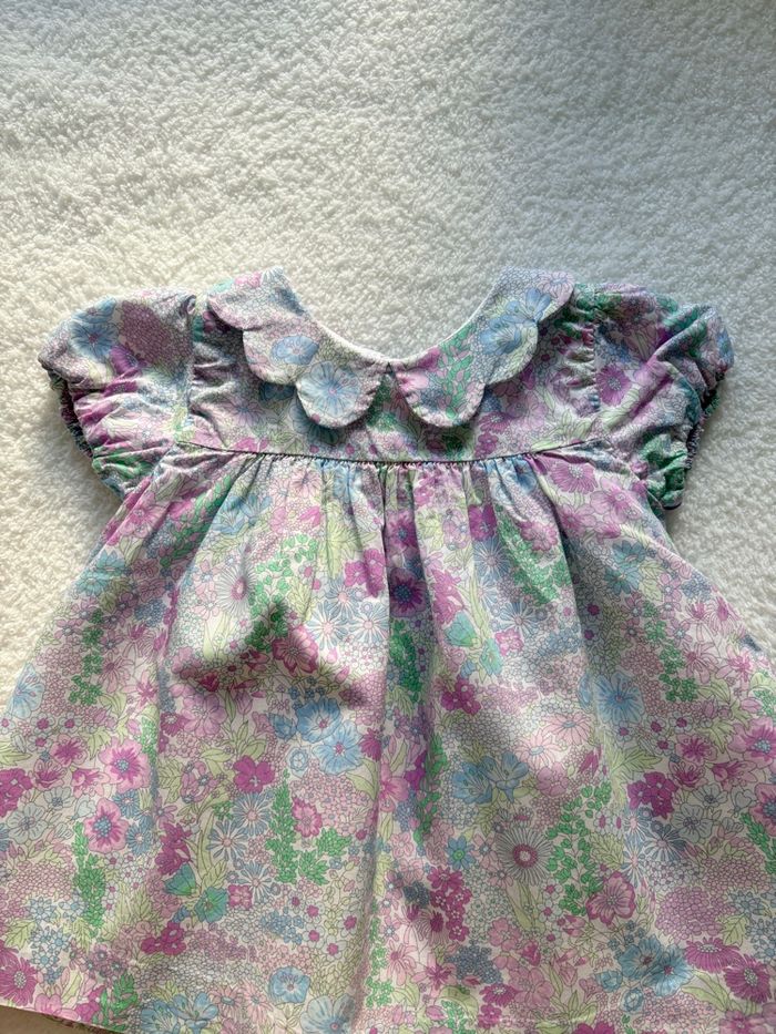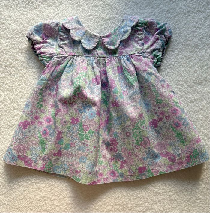Robe liberty manches courtes à col de la marque Jacadi, taille 3 mois (60cm). Très facile à enfiler grâce à sa boutonnière dans le dos, doublure en voile de coton. Très bon état, porté une seule fois. ✨ #jacadi#robe#liberty#été#bébé#fille#3mois