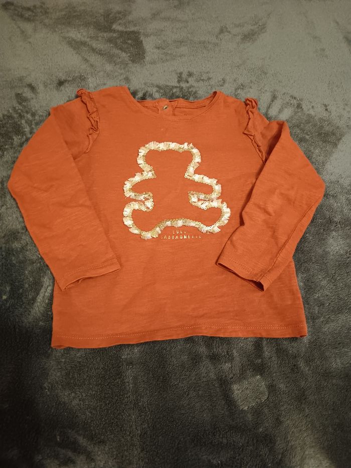 Tee shirt manches longues Lulu Castagnette Pas total marron pas totalement orange Taille 3 ans