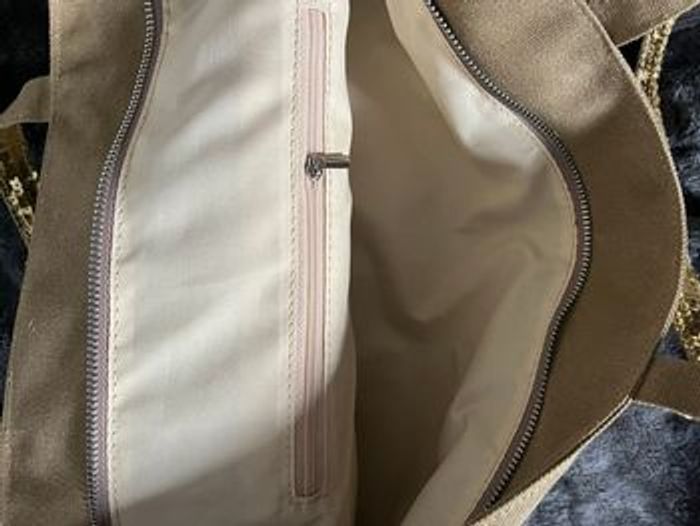 Sac cabas style VB chic parisien idéal pour les cours comme le quotidien Taille 35×33cm (le format A4 rentre parfaitement Se ferme à l'aide d'une fermeture + il y a une petite pochette qui se ferme à l'intérieur également #saccabas #sacvanessabruno #vanessabruno #sacamain #sacpaillettes #vanessabrunopaillettes #vanessabrunonoir #sacdecours #sacformata4