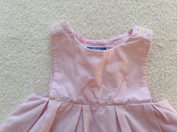 Robe chasuble de la marque Jacadi, taille 6 mois (67cm). Très simple à enfiler grâce à sa boutonnière sur l'emmanchure, velours côtelé, doublure en coton, ourlet point main. Convient à toutes saisons. ☀️ Très bon état. ✨ #jacadi#robe#bébé#fille#6mois