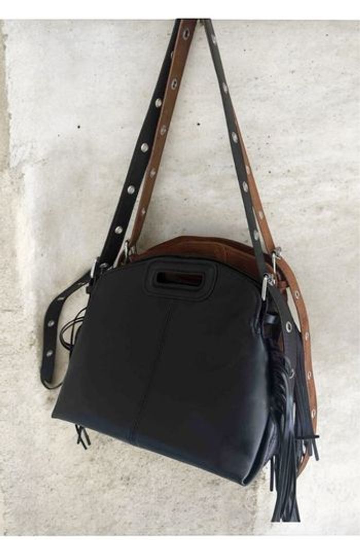 Sac frange noir neuf dans son pochon en simili cuir #sacmaje #maje #sacbandouliere #sacamain