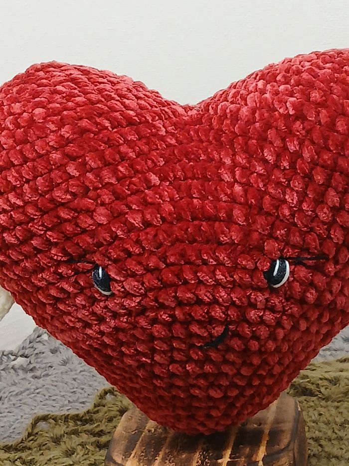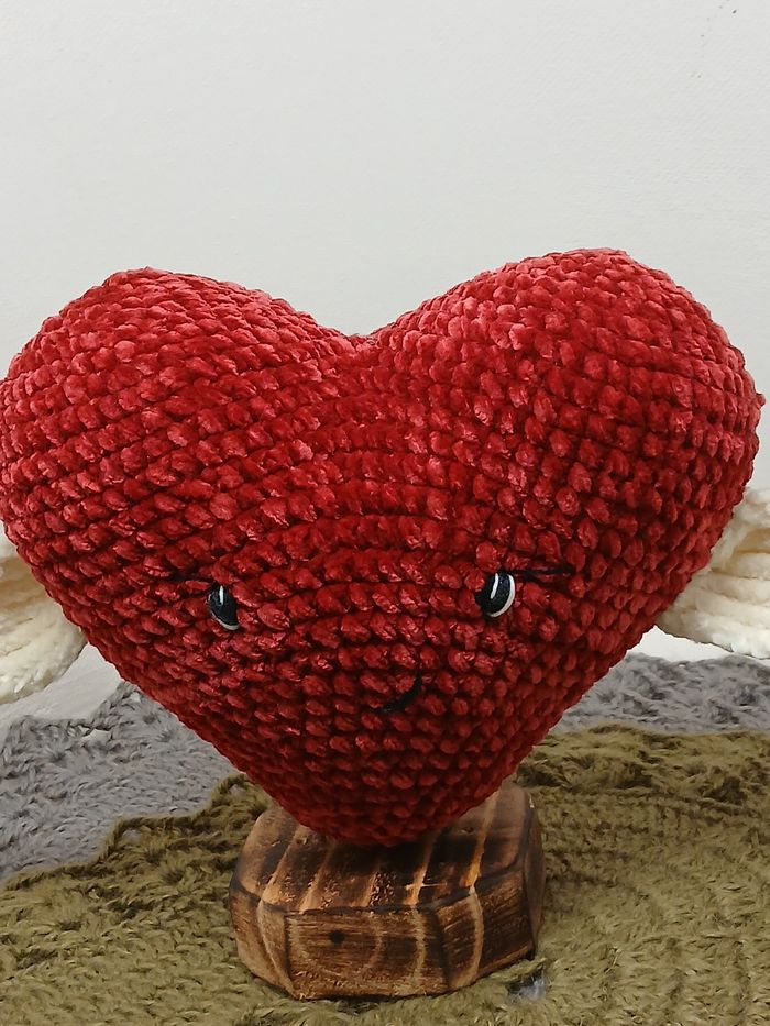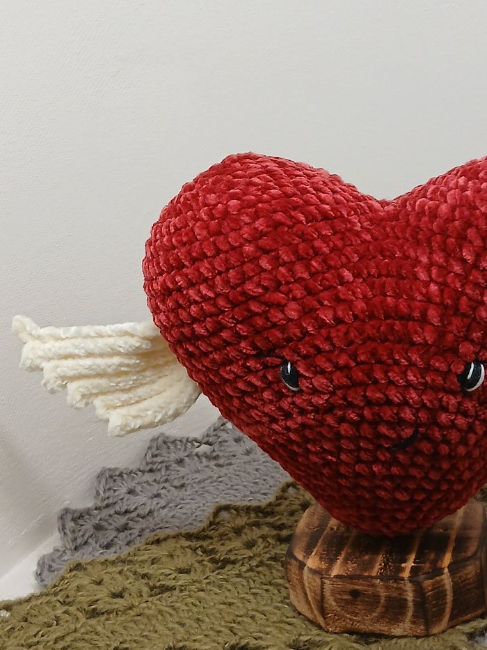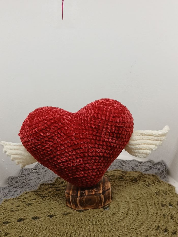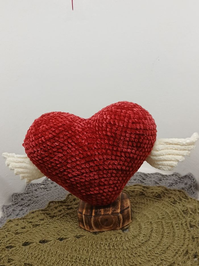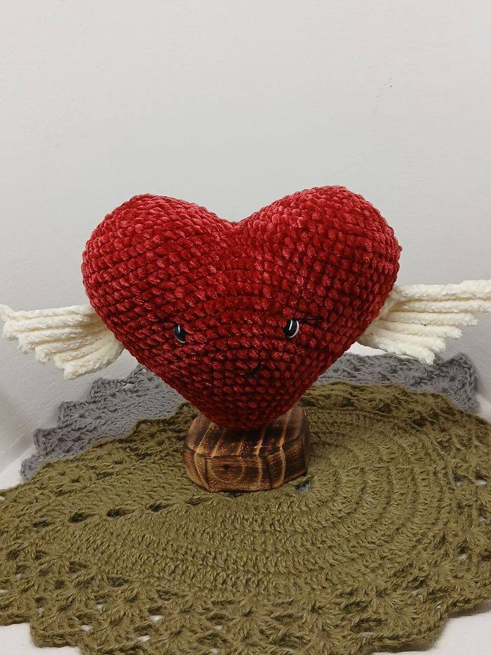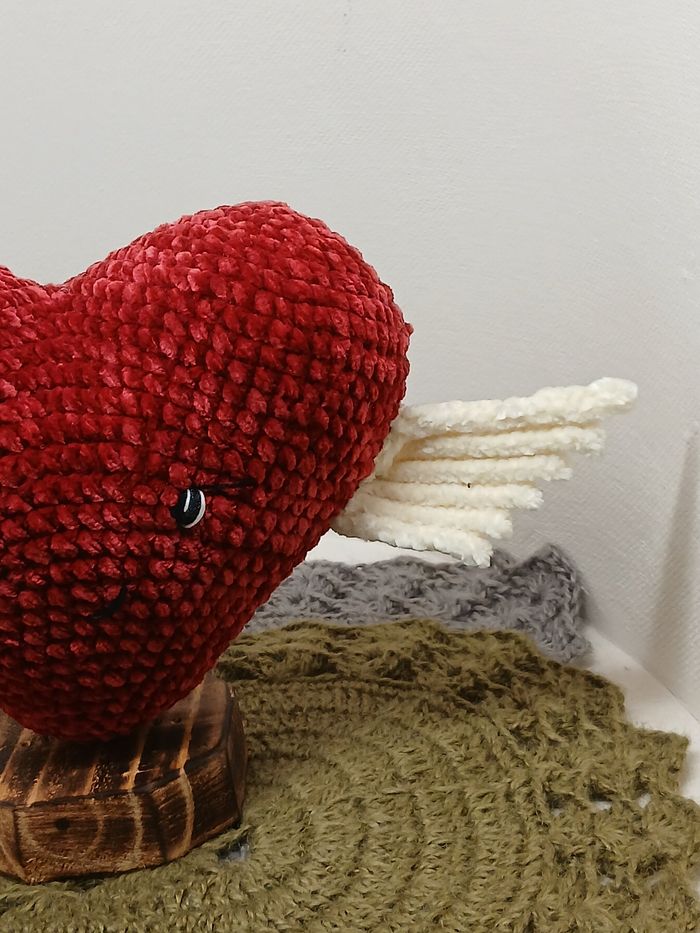 Joli cœur ailé créé par mes soins au crochet en fil peluche