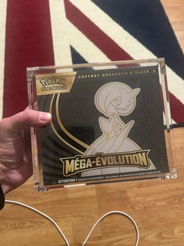 Case de protection pour ETB en acrylique anti UV jusqu'à 99% de protection. 👉 Envoi dans un packaging neutre afin d'éviter les vols 👉 Fournis avec des tampons à coller. 👉 Des aimants très puissant permettent de fermer le dessus de la case en protection acrylic/PVC transparent pour mettre en valeur la collection d'objets scellé Pokémon Possibilité de faire un plus gros lot (max 8) Les ETB Destinées Radieuse, Zénith suprême EB12.5, Évolution Prismatiques EV8.5, Destinée à Paldea EV4.5, destinée Rivales, Aventures ensembles EV9, Flamme Blanche EV10.5, Foudre noir EV10.5, Étincelles Déferlantes EV8, sont pas à vendre ni fournis dans le colis. La case protège les ETB des blocs Épée et Bouclier (EB), Écarlate et Violet (EV), et Soleil et Lune (SL) et pour le nouveau bloc Mega (ME) Préparez le sortie de ME2 flammes m fantasmagoriques avec Dracaufeu