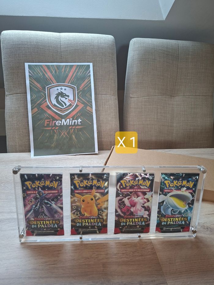 Présentoir pour 4 boosters Pokémon de qualité premium FireMint en acrylique épais - photo numéro 1